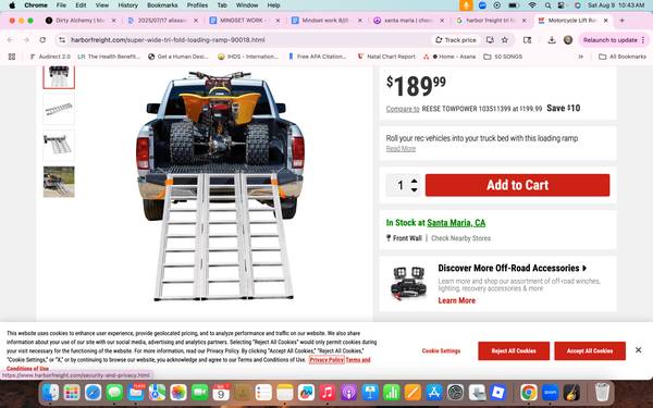 Purchased trifold aluminum ramp from harbor freight for 200$ about 5 months ago. Purchase U-line ratchet load bar (new unopened)